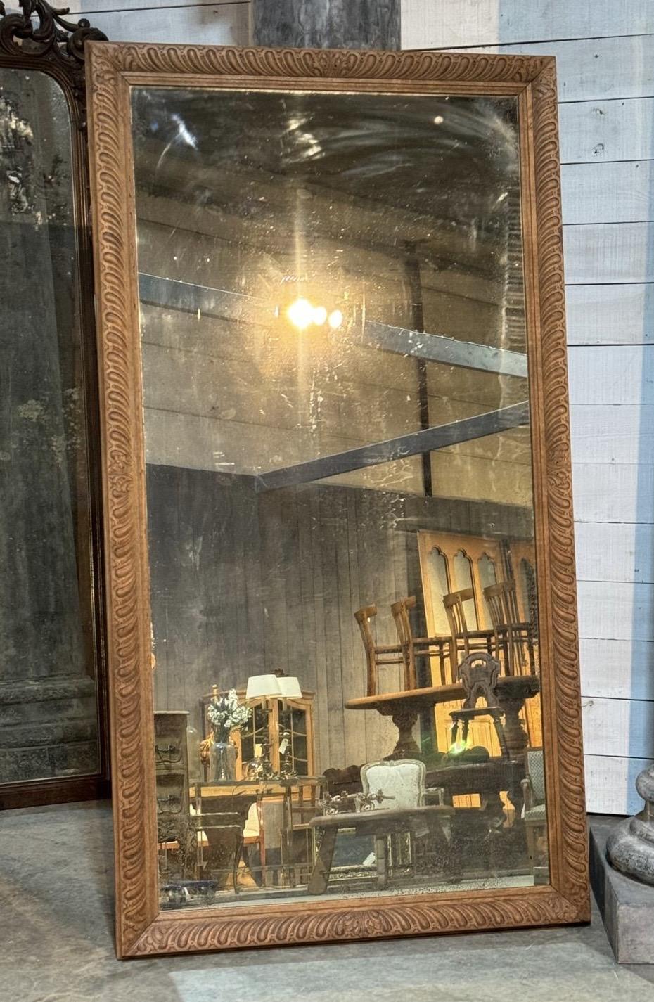 A Large Wall Mirror that could be hung vertical or horizontal or floor standing. French in origin dating to the 19th Century. Has its original mirror plate which has minor spotting just how you would want it.