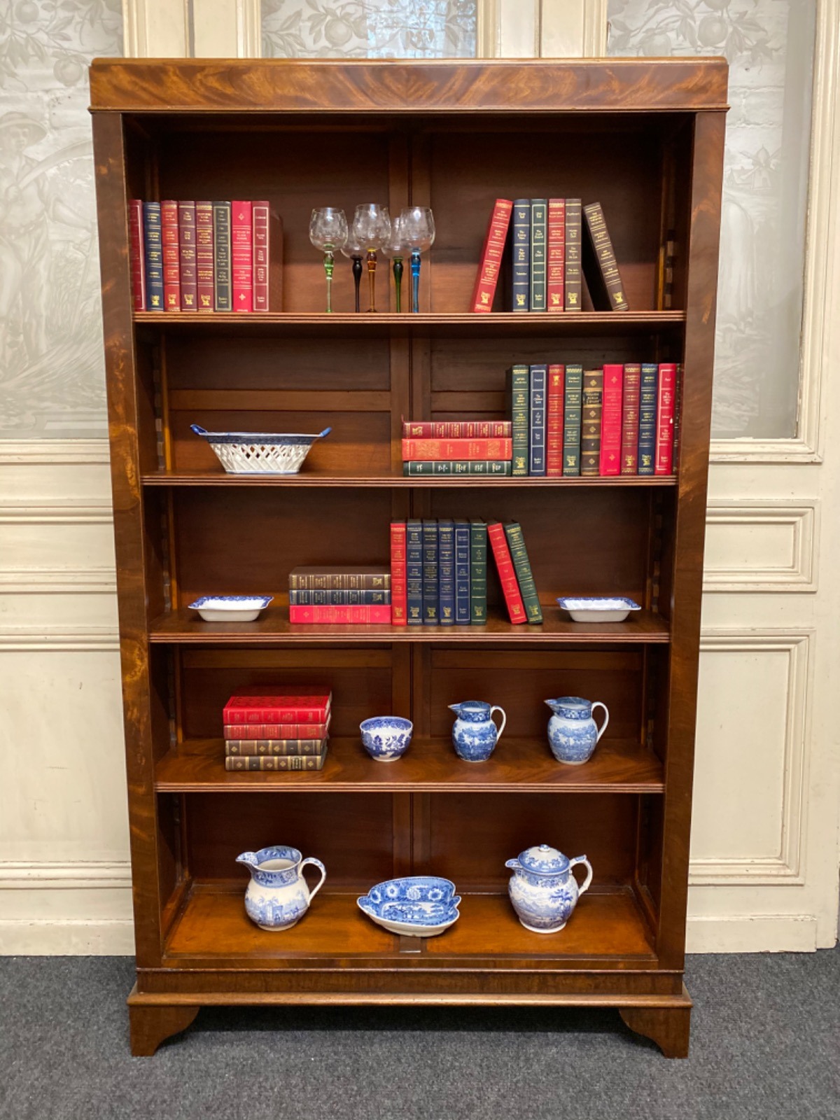 A nice walnut open bookcase or shelves. Having 4 fully adjustable shelves and sitting on bracket feet. Having been re finished to a very high standard in excellent condition for the home.