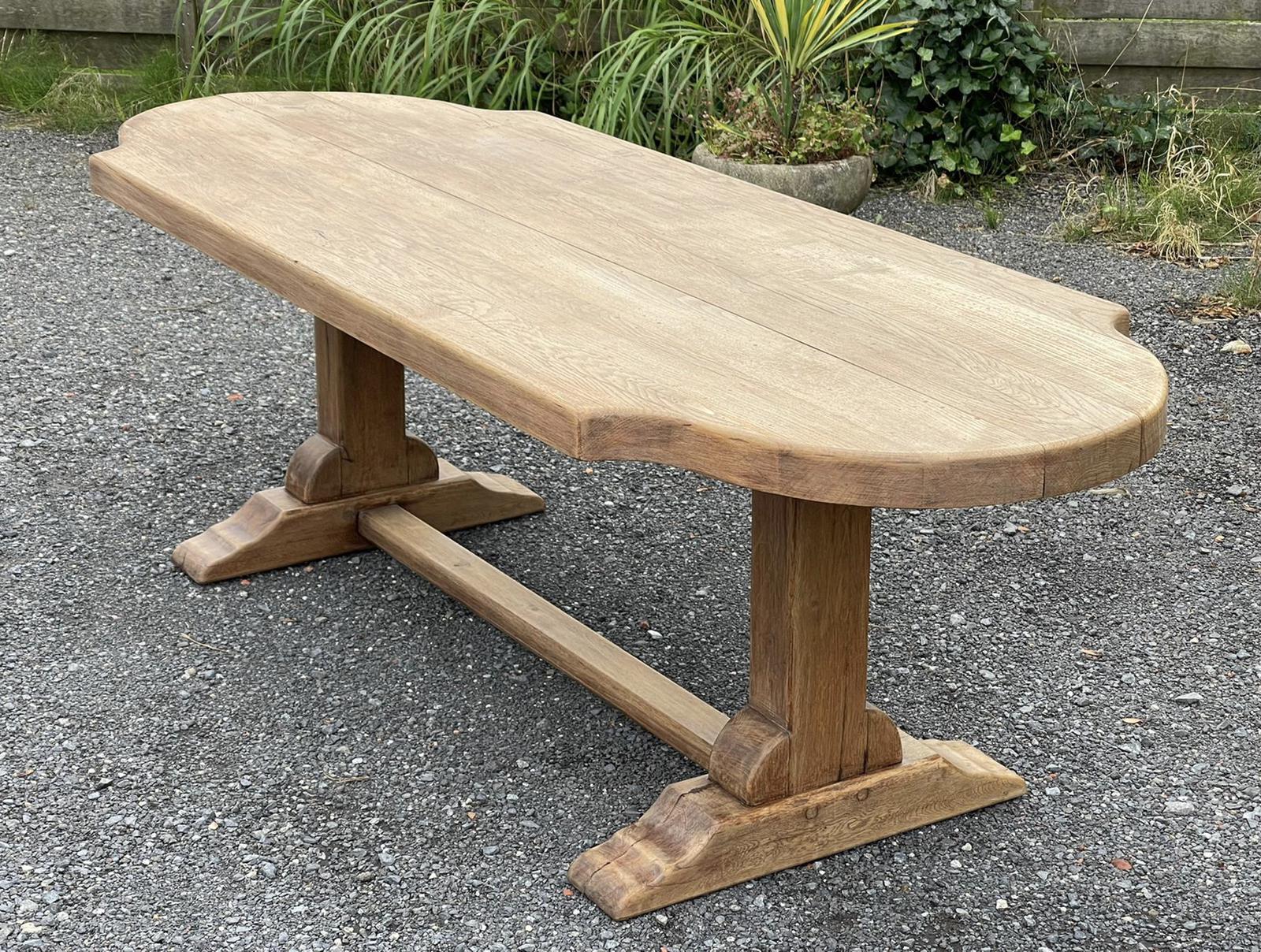 A superb solid oak French round ended farmhouse refectory Dining Table. Great rustic look and chunky top at 6.5cm thick. French in origin and we have bleached this for a fresh look. Deeper than most which is hard to find.