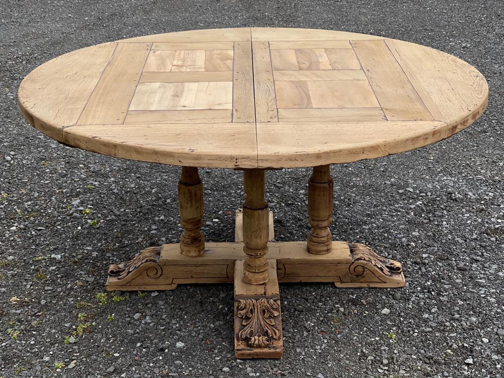 Large Round French Bleached Oak Farmhouse Table with Extensions