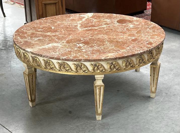 A wonderful French Large Size Round Coffee Table, having original perfect rouge marble top. The nicely decorated base having original finish. This is a wonderful quality piece dating to the early 1900s in excellent original condition for the home.