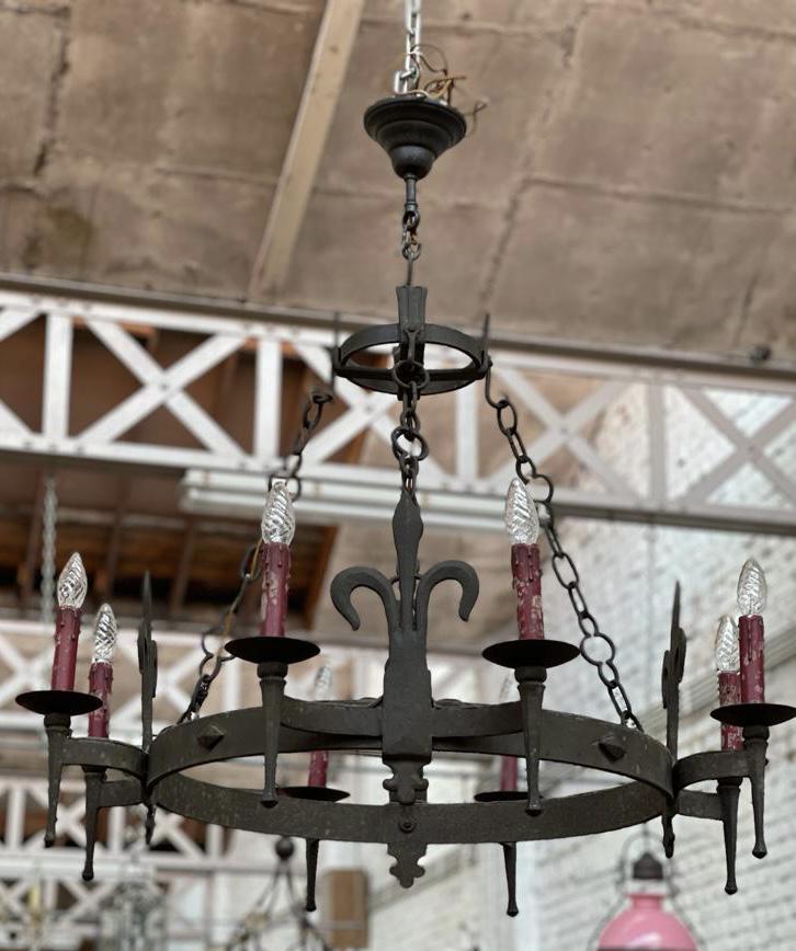 A wonderful large decorative round iron French Chandelier dating to around 100 years old. Would look amazing above a farmhouse Table but of course would need re wiring by a qualified electrician.