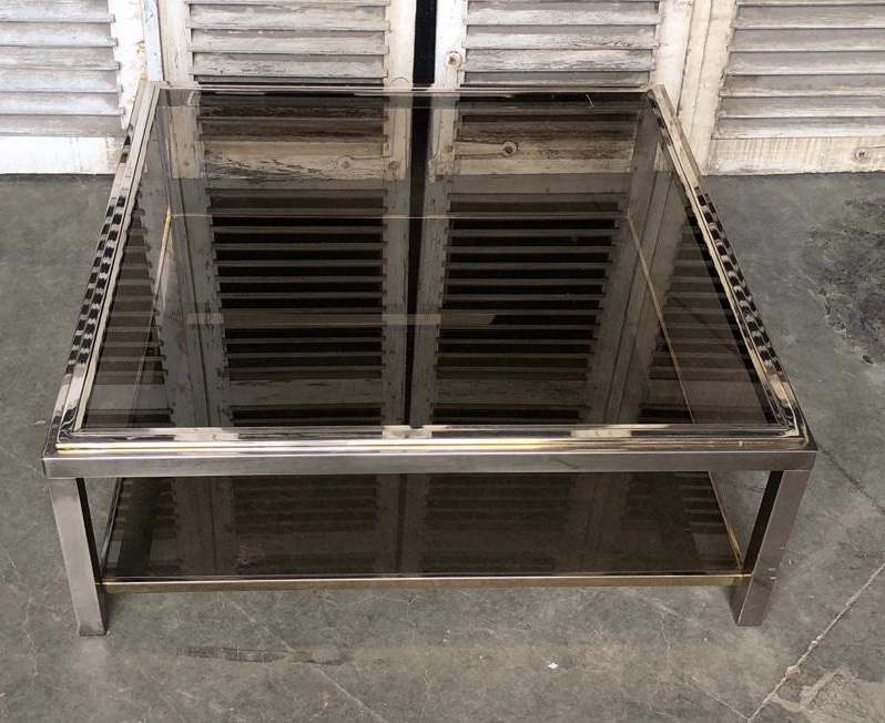 This is a large stylish Hollywood chrome and glass coffee table which is of a very good quality and stylish this original 1970s table.