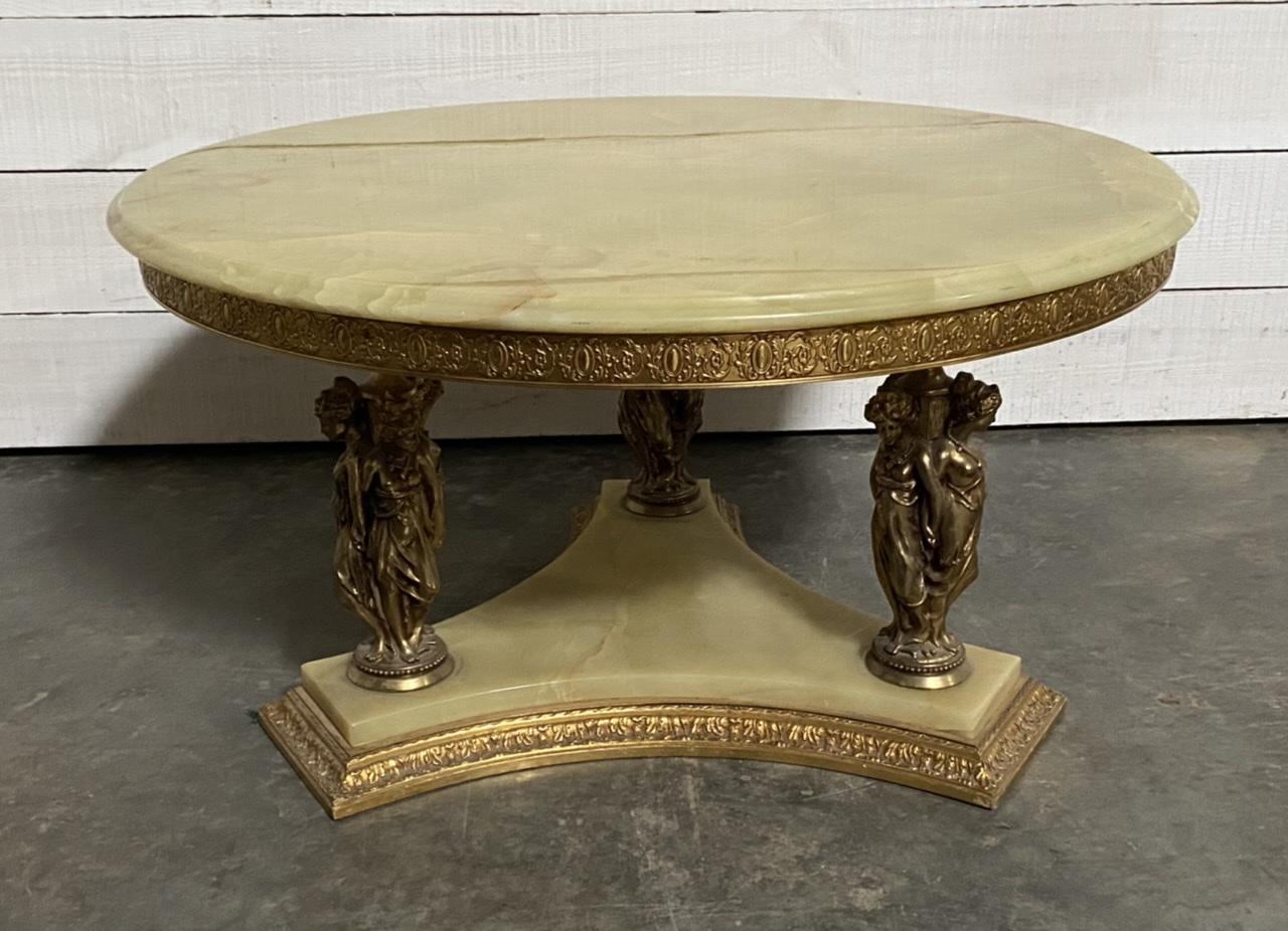 This is a very stylish larger size French coffee table, made from onyx and brass and dating to to the Mid Century period. In excellent original condition for the home.