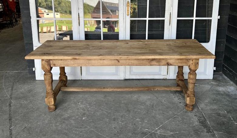 Larger French antique solid oak farmhouse dining table of excellent quality construction this table will be around for generations to come. We have bleached it for a lighter look and in overall excellent original condition for the home.