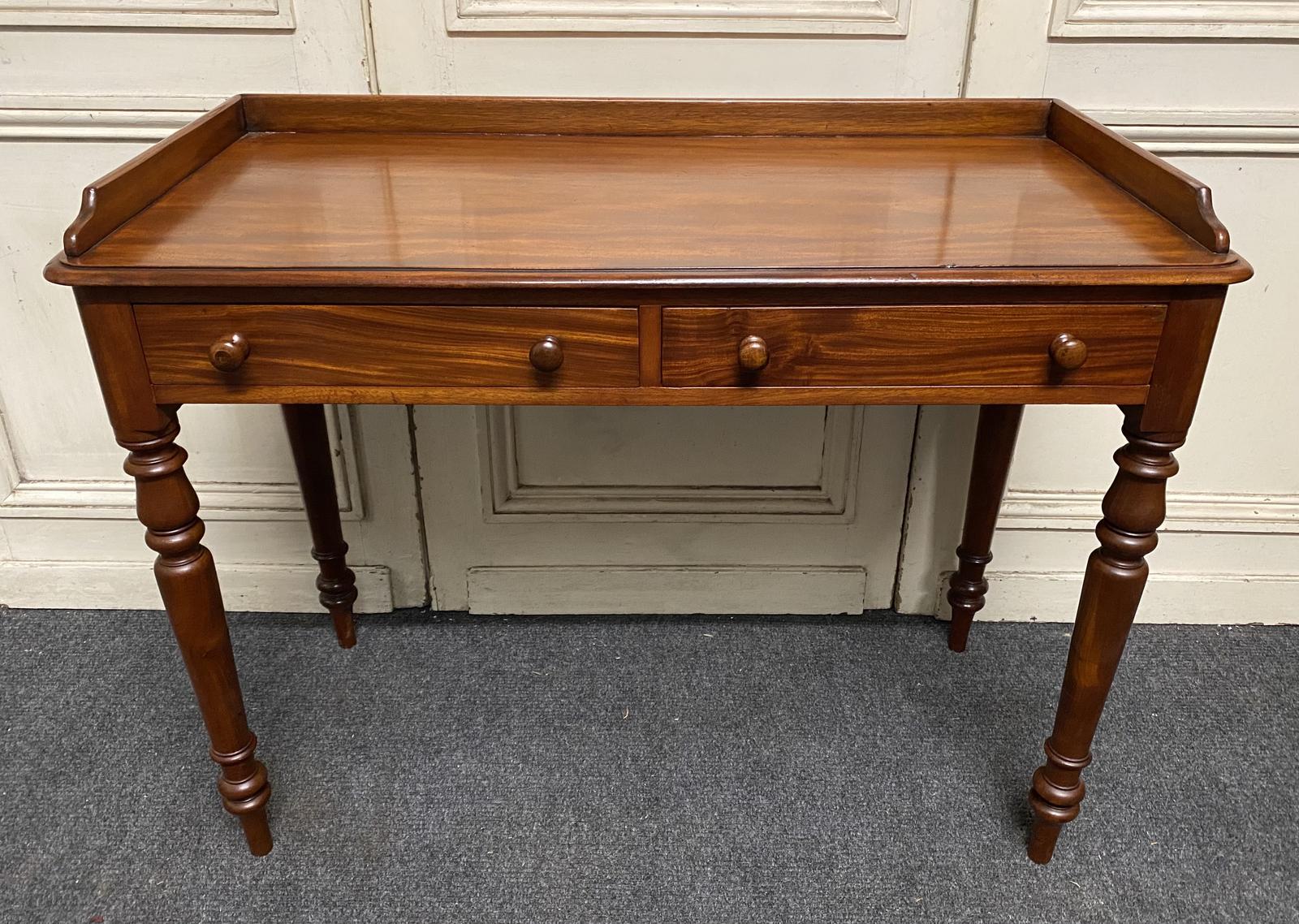 A good quality Victorian 2 drawer Writing Table / Desk. Both drawers run smoothly. Nice slender turned legs. The knee height is good at 63 cm.