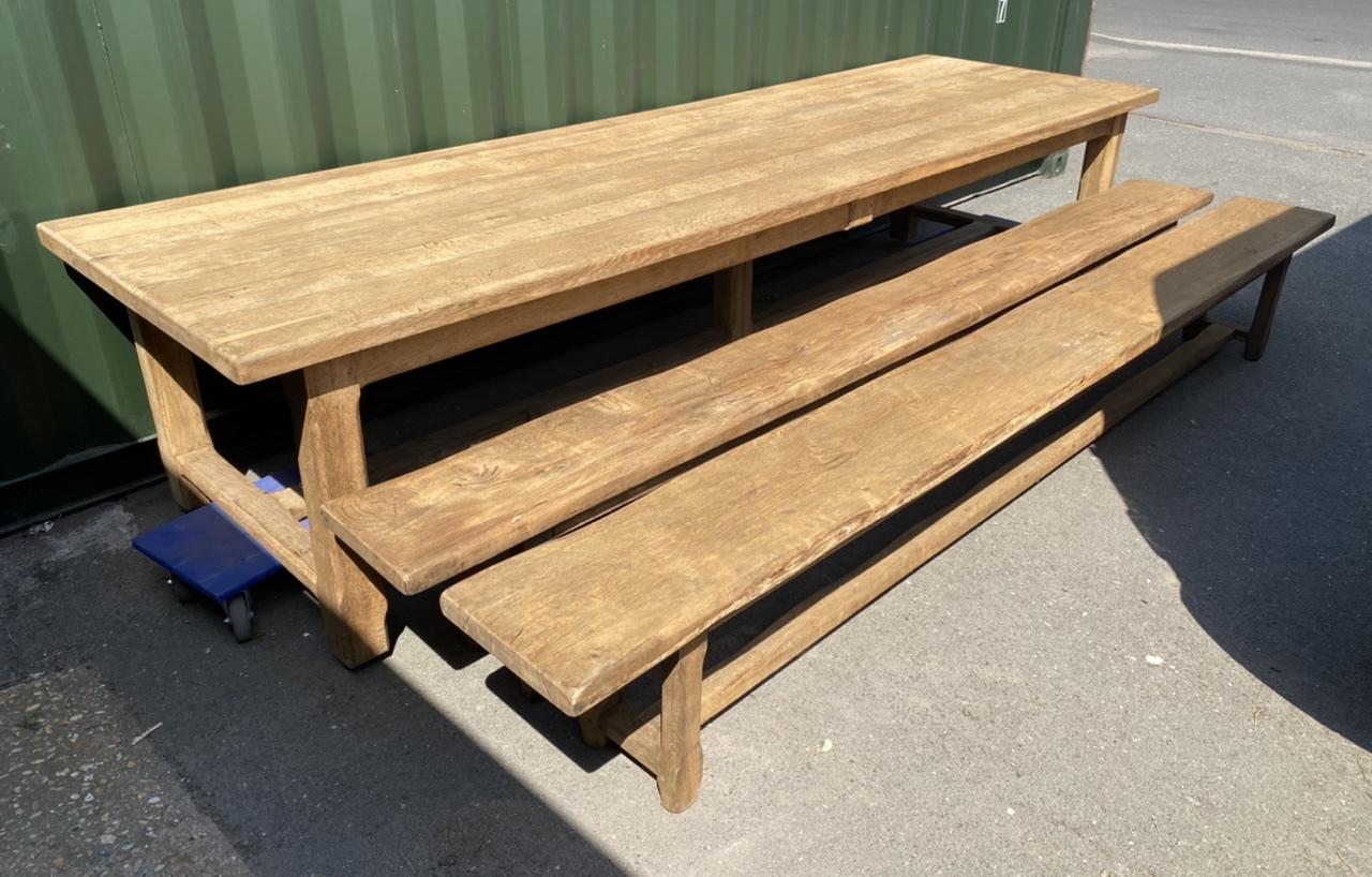Massive 3.5m French Oak Farmhouse Dining Table & Pair Benches (Would Split Table/Benches)
