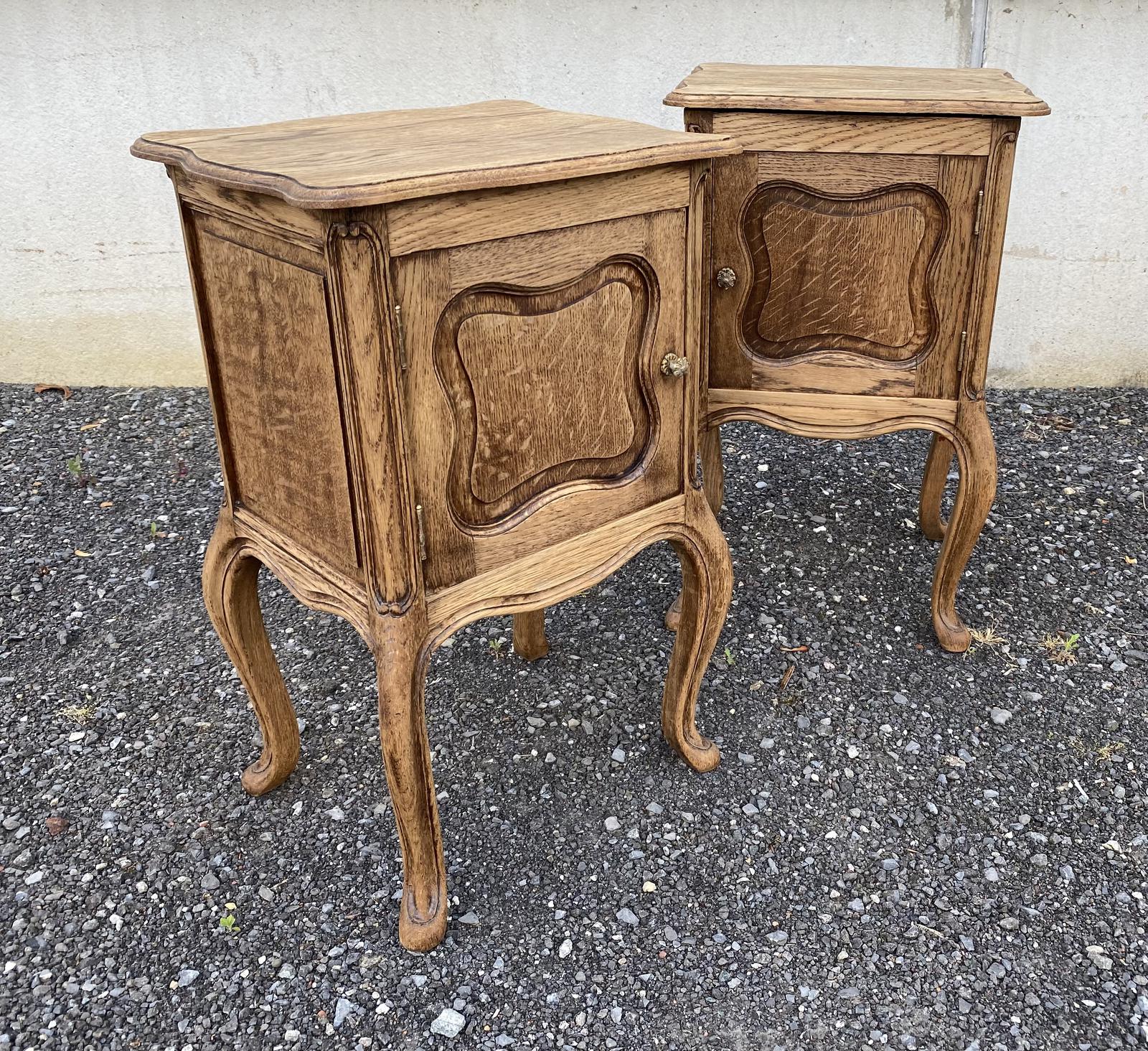 A lovely pair of solid Oak French Bedsides dating to around 1900. The doors are correctly opposing.