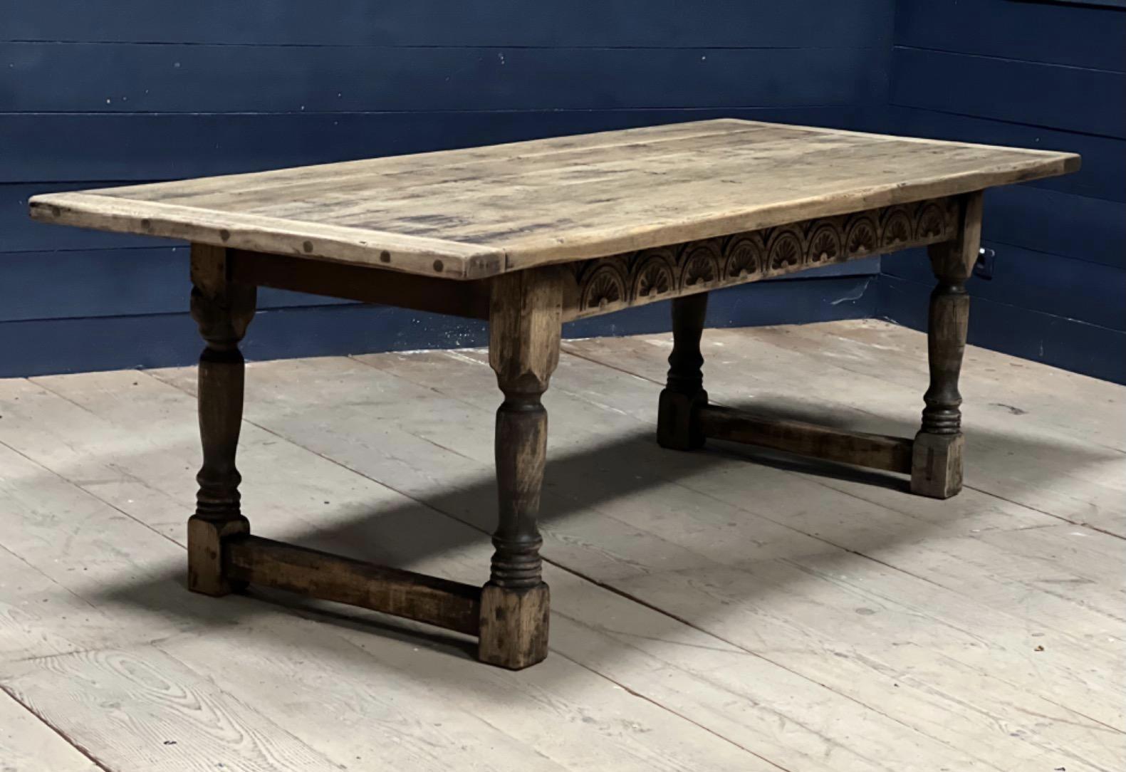Oak Refectory Farmhouses Dining Table, Carved Rails and Deep