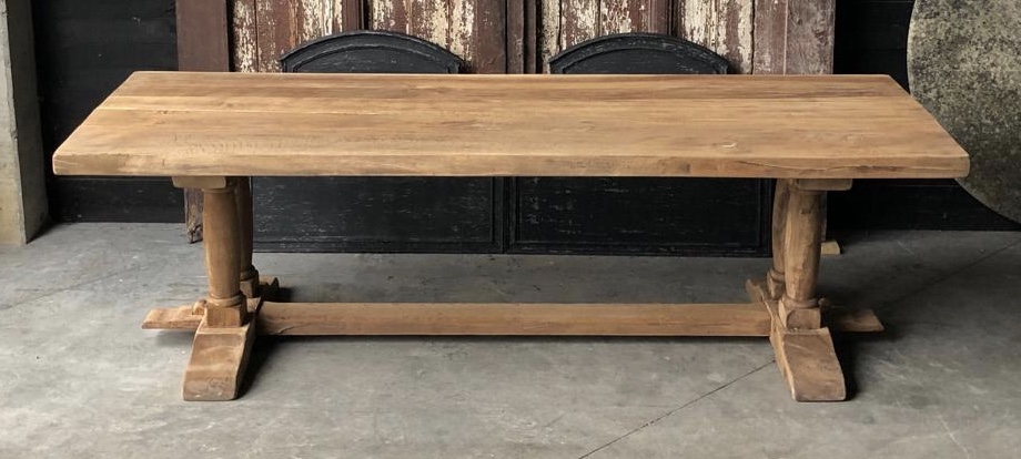 This is a lovely old 19th Century antique oak refectory farmhouse dining table, now sandblasted so having a modern feel. It is very sturdy and solid.
