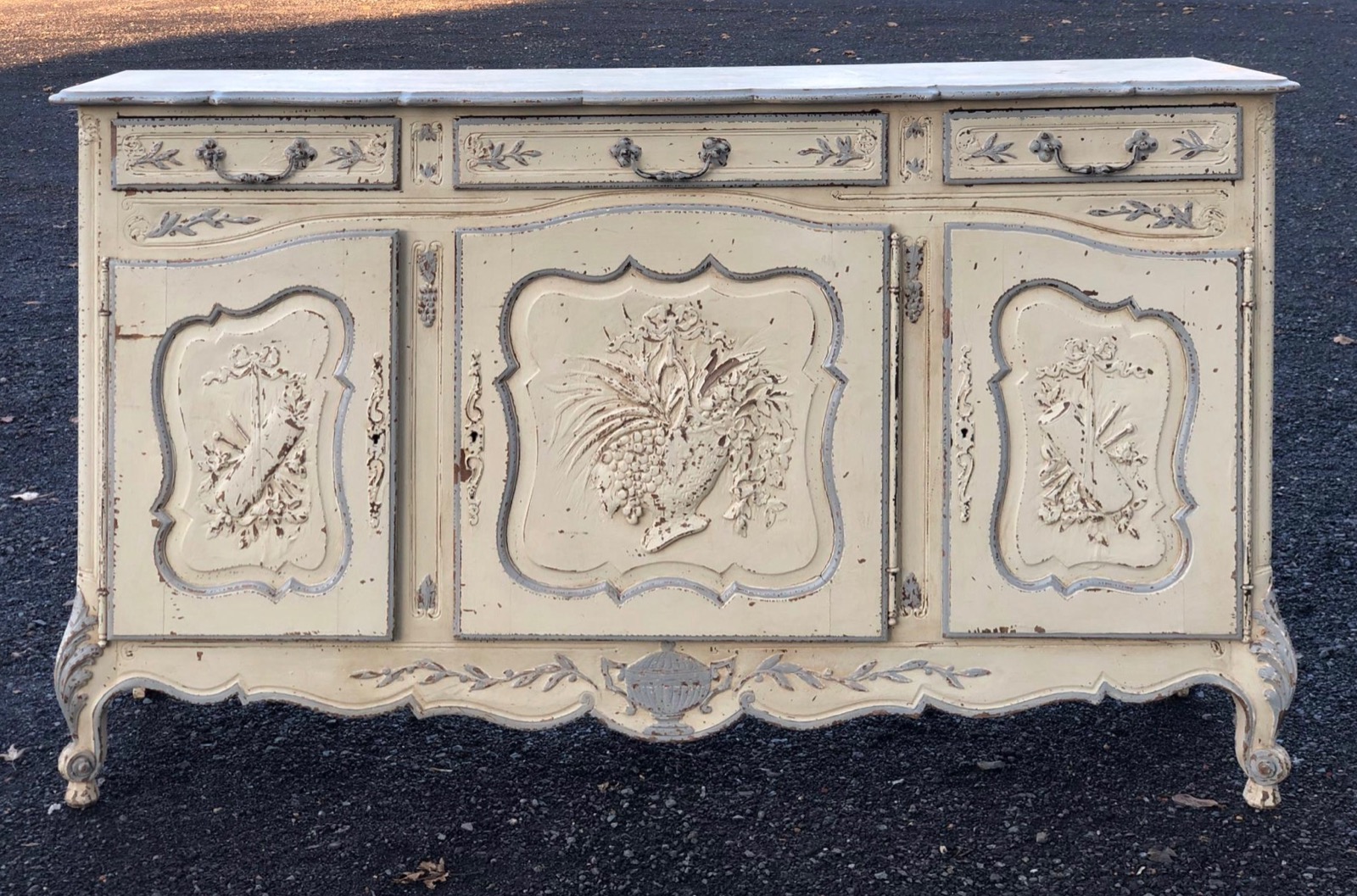 A lovely solid oak decorated French dresser base sideboard, dating to the late 19th Century.