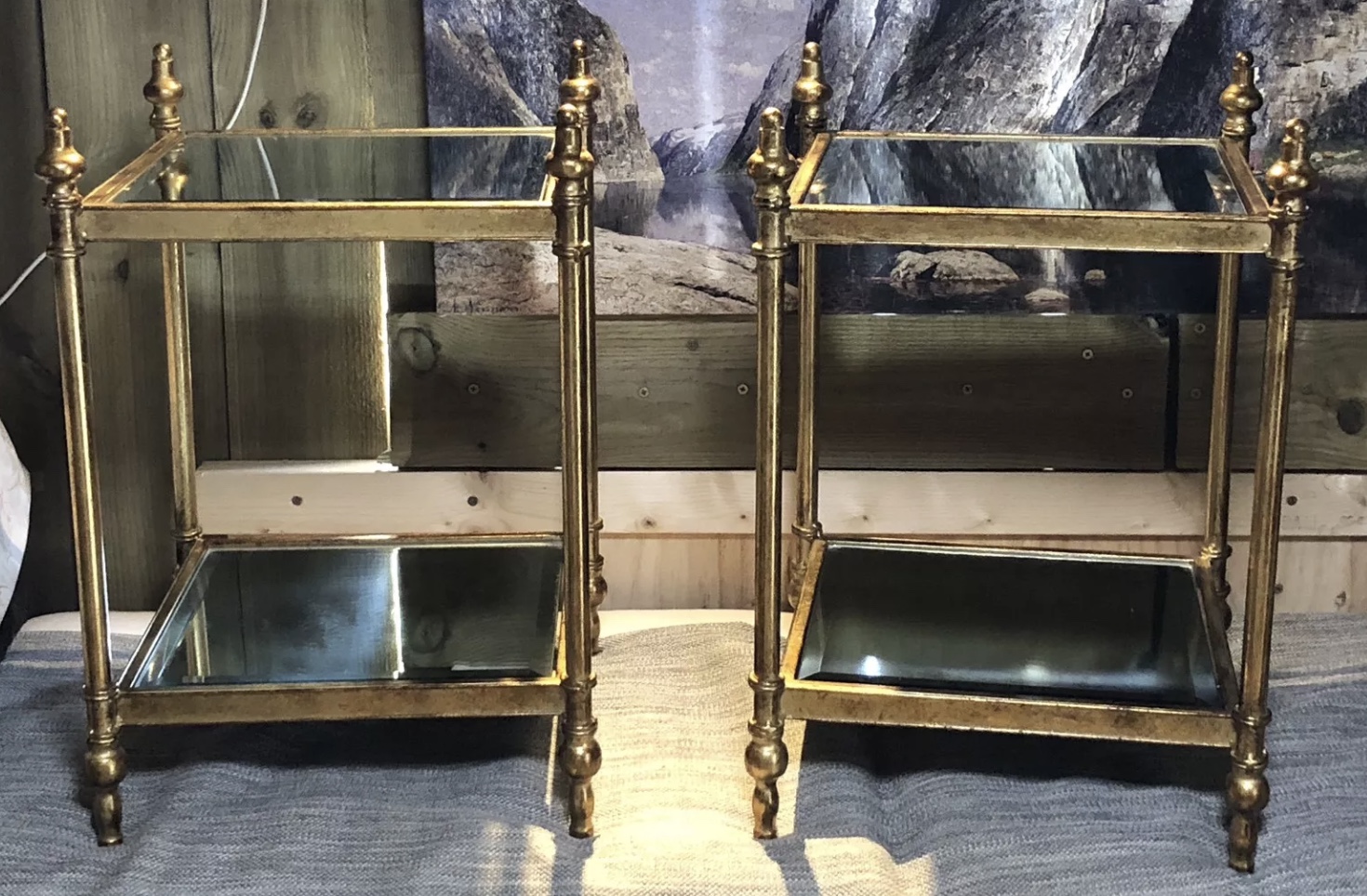 Pair of Brass Mirrored Lamp Tables c.1920