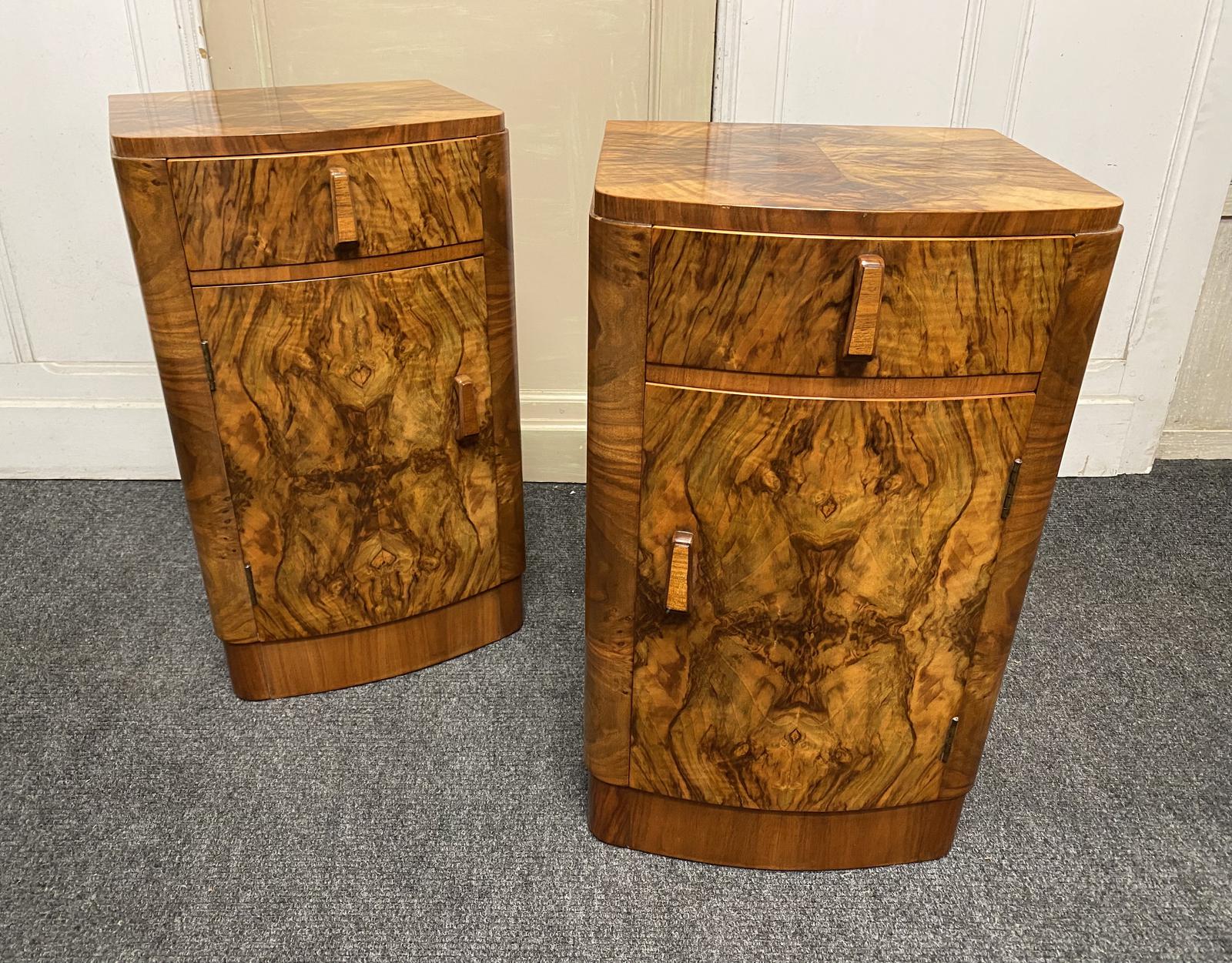 Pair of Burr Walnut Art Deco Bedside Cupboards