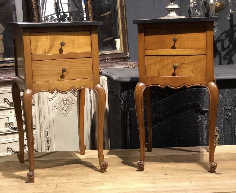 Pair of French Cherry Wood Bedside Drawers c.1890