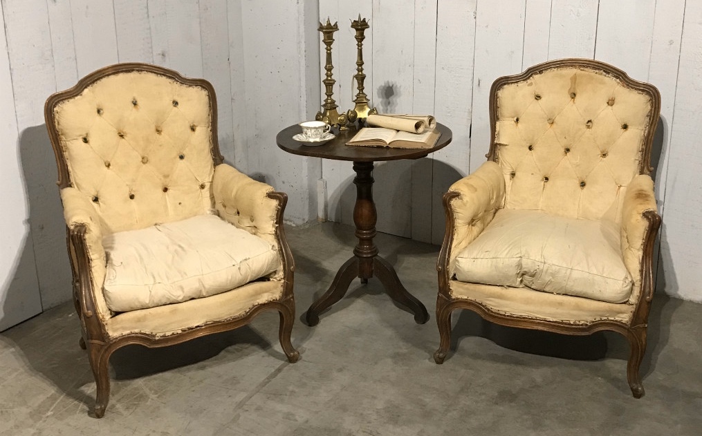 A good sized pair of French bergere armchairs, dating to around 1920 the frames are strong and sturdy and they are very comfortably. Ready to be re upholstered in your fabric.