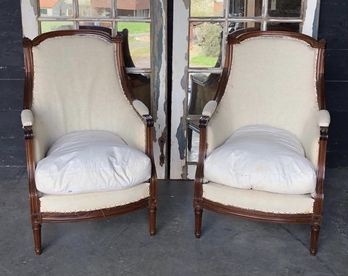 Pair of Mahogany Louis XVI Bergere Armchairs