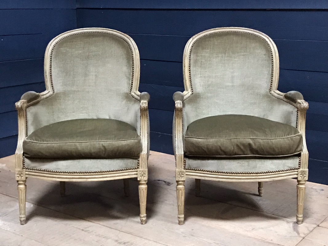 These are a delightful pair of French armchair, originally painted and now a lovely slightly aged look. They are strong and sturdy and very comfortable.