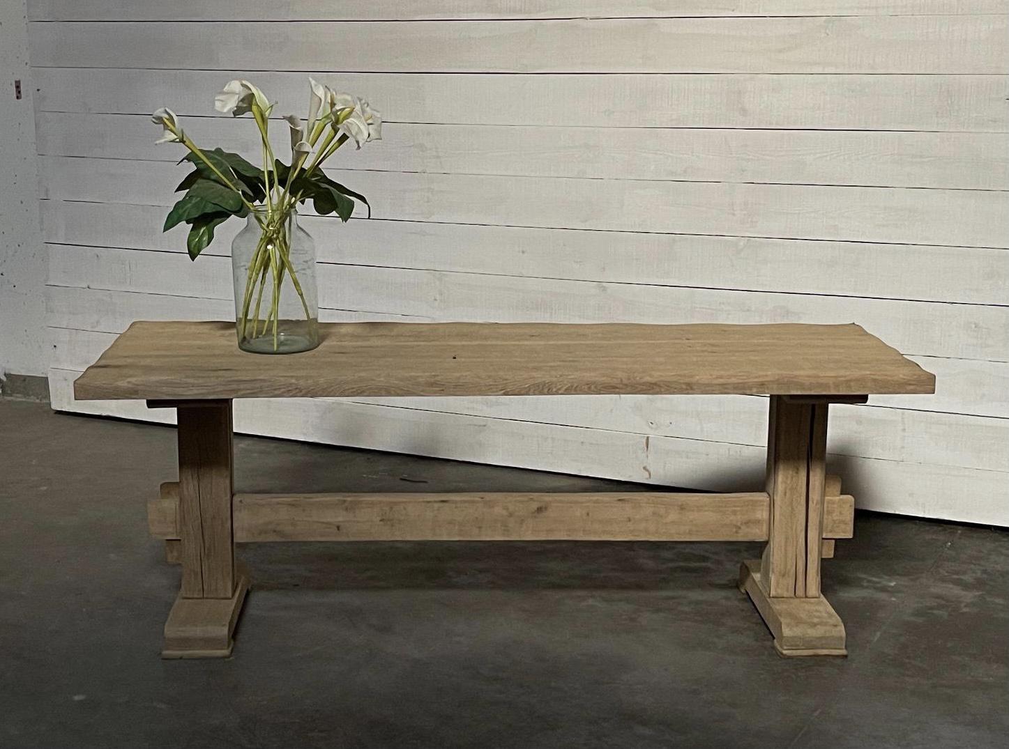 Love the look of this primitive style French Farmhouse Dining Table. Made from Solid Oak around 1900 which we have bleached. Excellent quality construction this table will be around for generations to some.