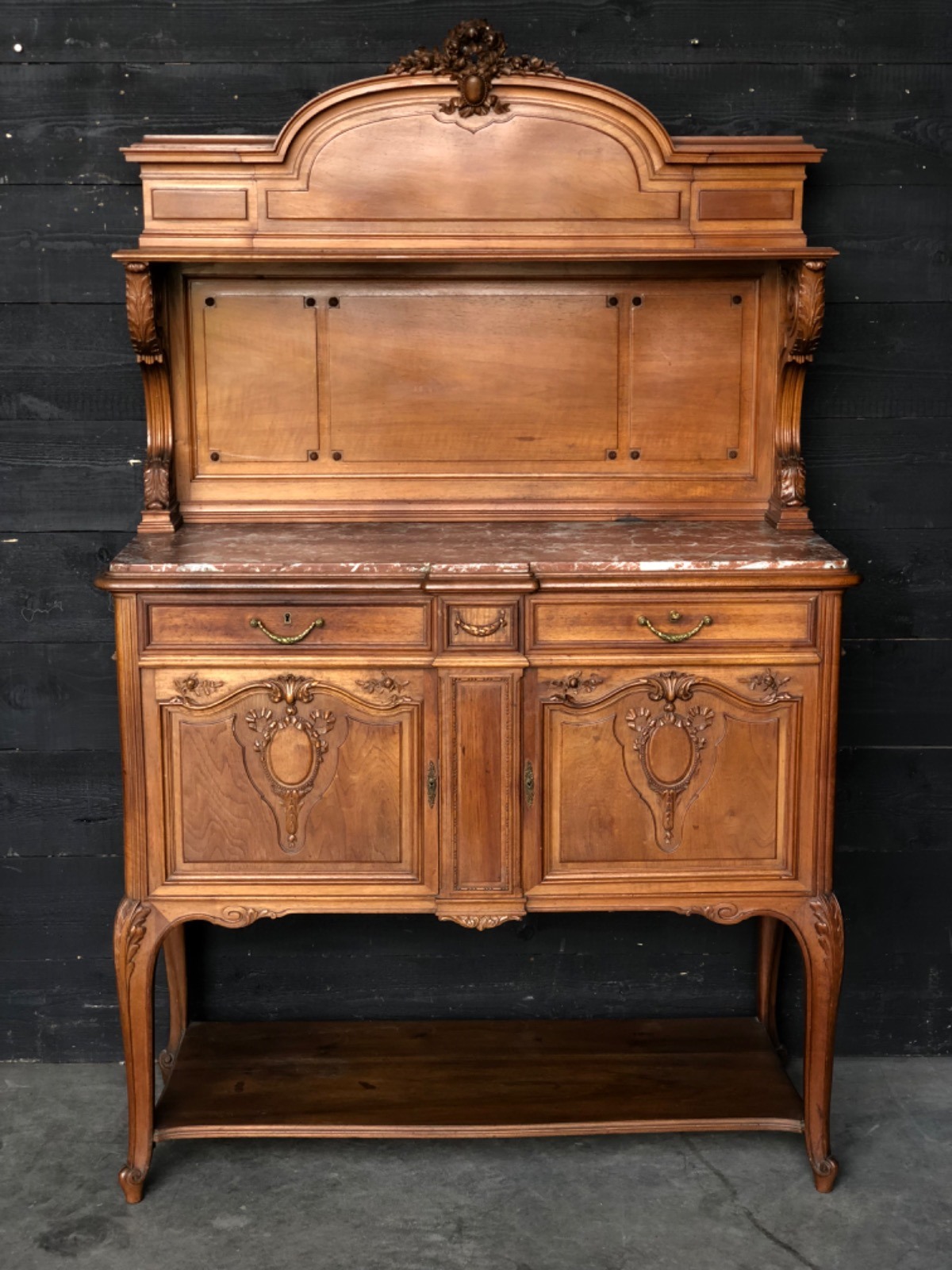 A lovely French Side Cabinet or Chiffonier, made from Walnut with a superb rouge marble top. Having 2 drawers and 2 cupboards providing storage and fitted with lovely original handles. This is a very high quality piece of furniture in excellent condition for the home.