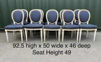 A very hard to find long set of 10 French Parisian dining chairs. All are strong, sturdy and comfortable. The upholstery is in good condition but of course you may wish to replace with your own fabric, the internal upholstery is in excellent condition.
