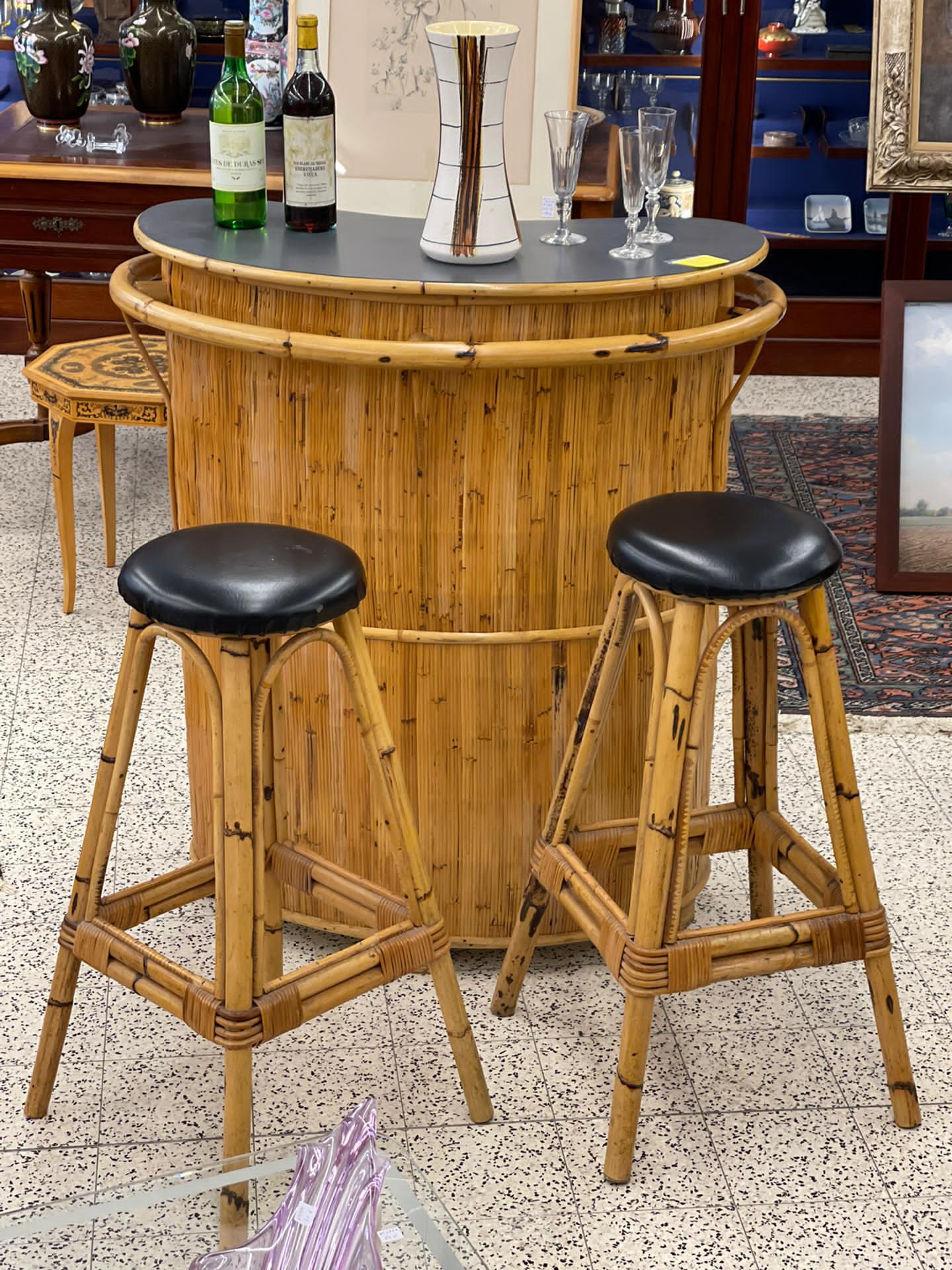 A great Retro French Bamboo Bar with 2 matching bar stools. Dating to the 1970s in excellent condition.