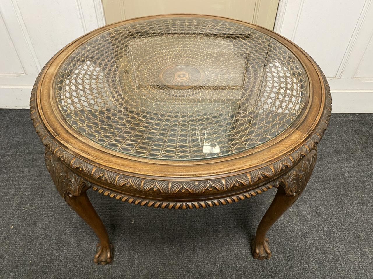 A nice quality Round Coffee Table, made from Walnut and originating in Belgium. The cane top under the glass is perfect and the whole table is in excellent original condition for the home.