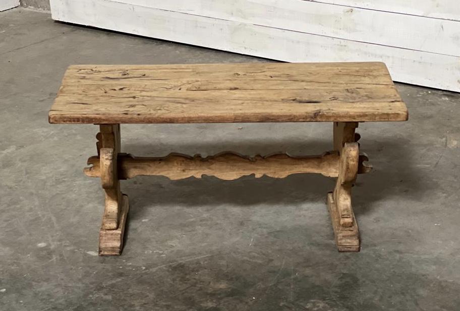 This is a great looking rustic solid oak French coffee table of slightly larger dimensions than normal. We have bleached it to bring out the rustic nature of the oak. In excellent original condition for the home.