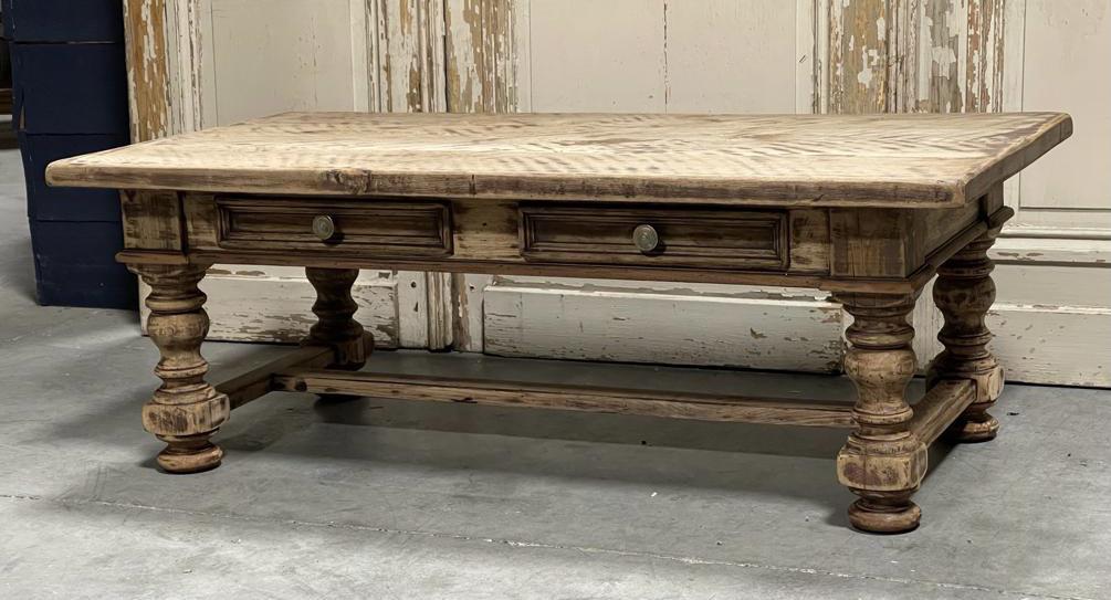 Rustic French Bleached Oak Coffee Table with 2 Drawers