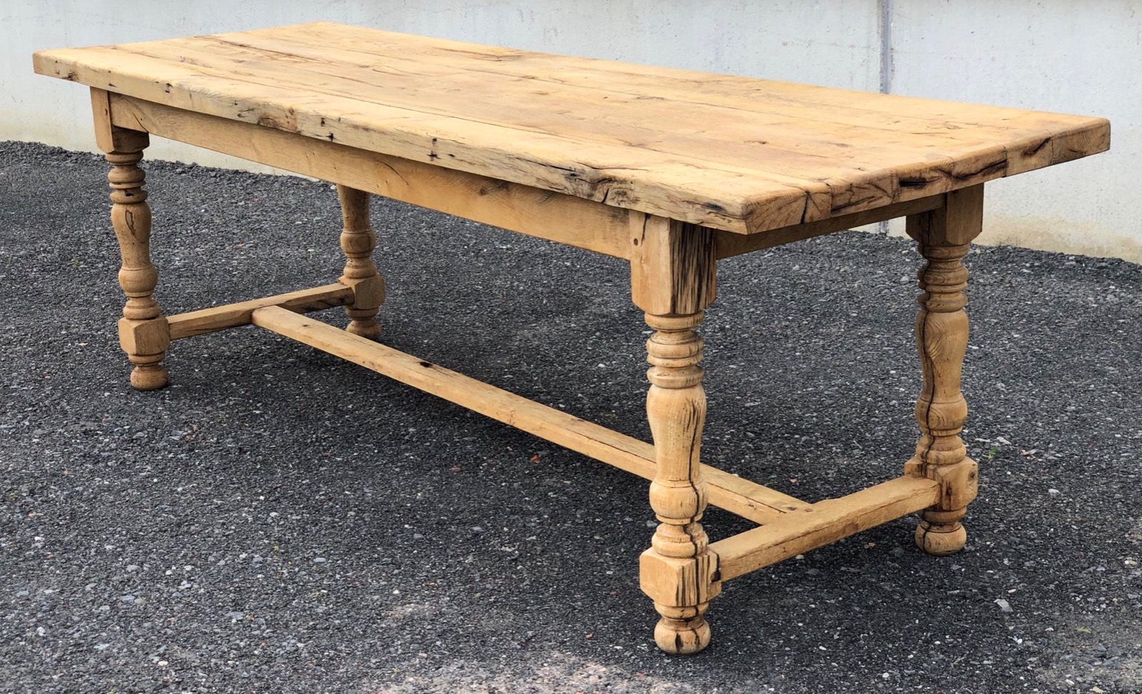 A Large Oak Refectory Farmhouse Dining Table, made from Solid Oak and French in origin. Dating to the mid 19th Century. Very strong and sturdy. We have bleached it for that modern look but it can be waxed to any shade if desired.