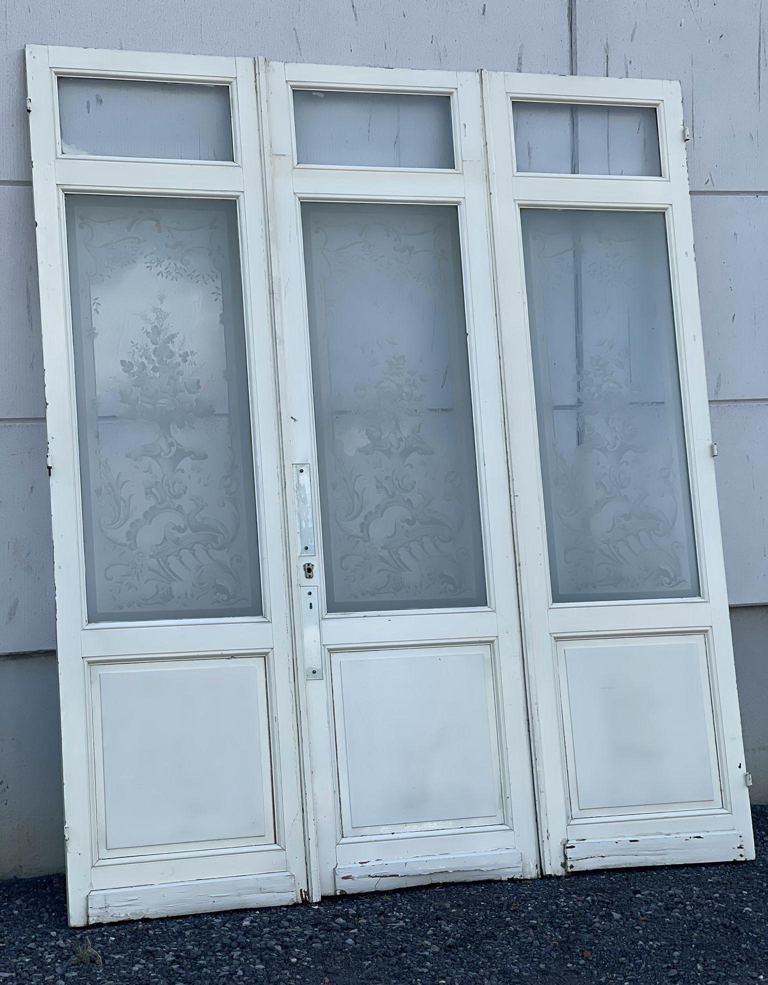 A lovely set of original 19th Century French Chateau doors. The etched glass is all perfect with floral scenes. These is some rotten timber in the bottom of the doors which can be seen in photos but they are in overall excellent original condition.