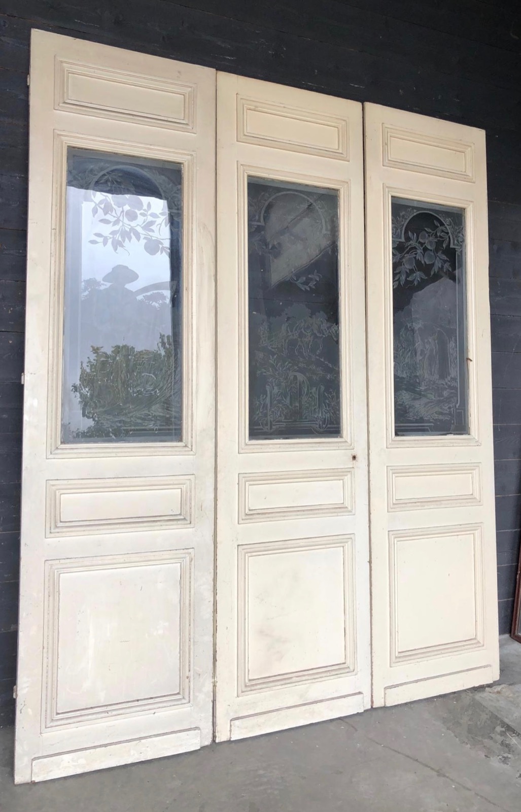 Set of 3 French Chateau Etched Glass Doors