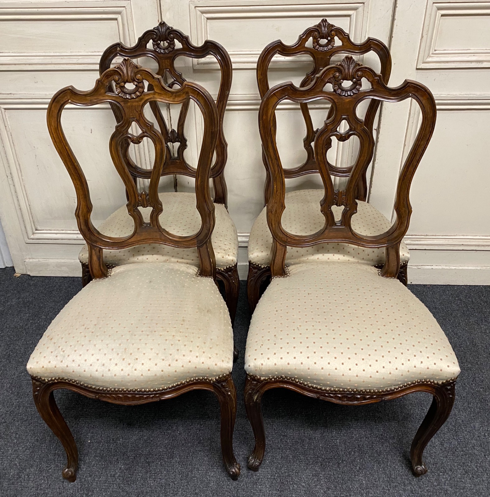 Set of 4 French Walnut Dining Chairs