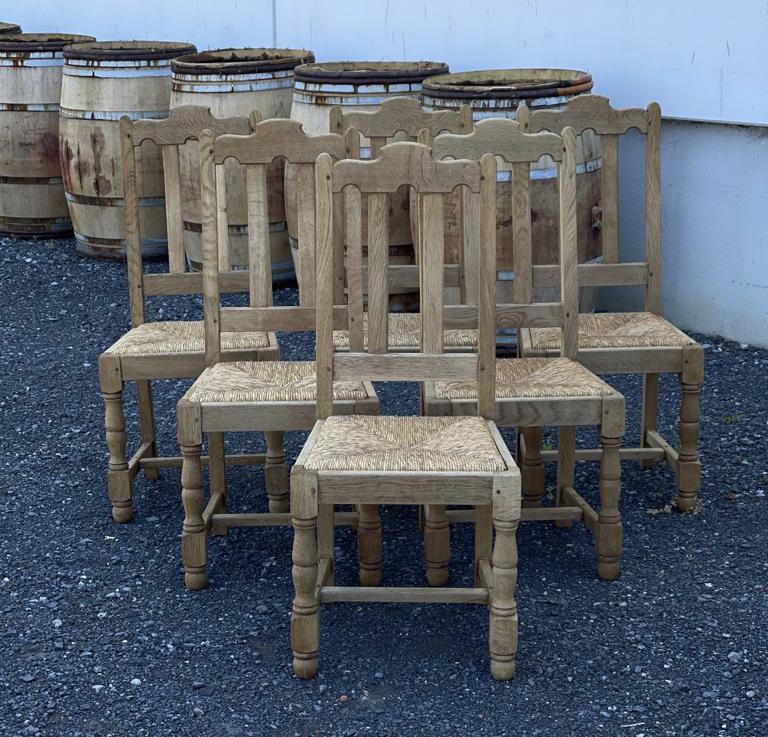 Set of 6 French Bleached Oak Farmhouse Dining Chairs