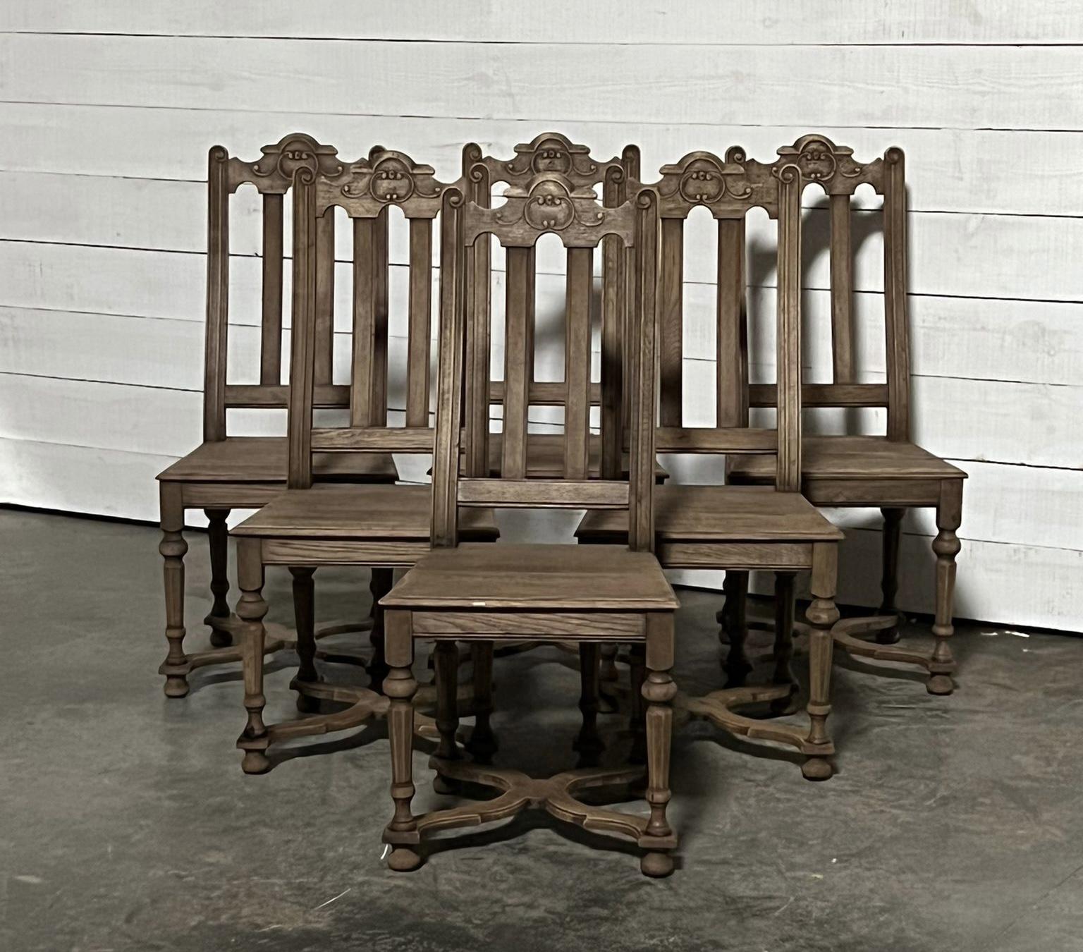 Set of 6 French Bleached Oak Farmhouse Dining Chairs
