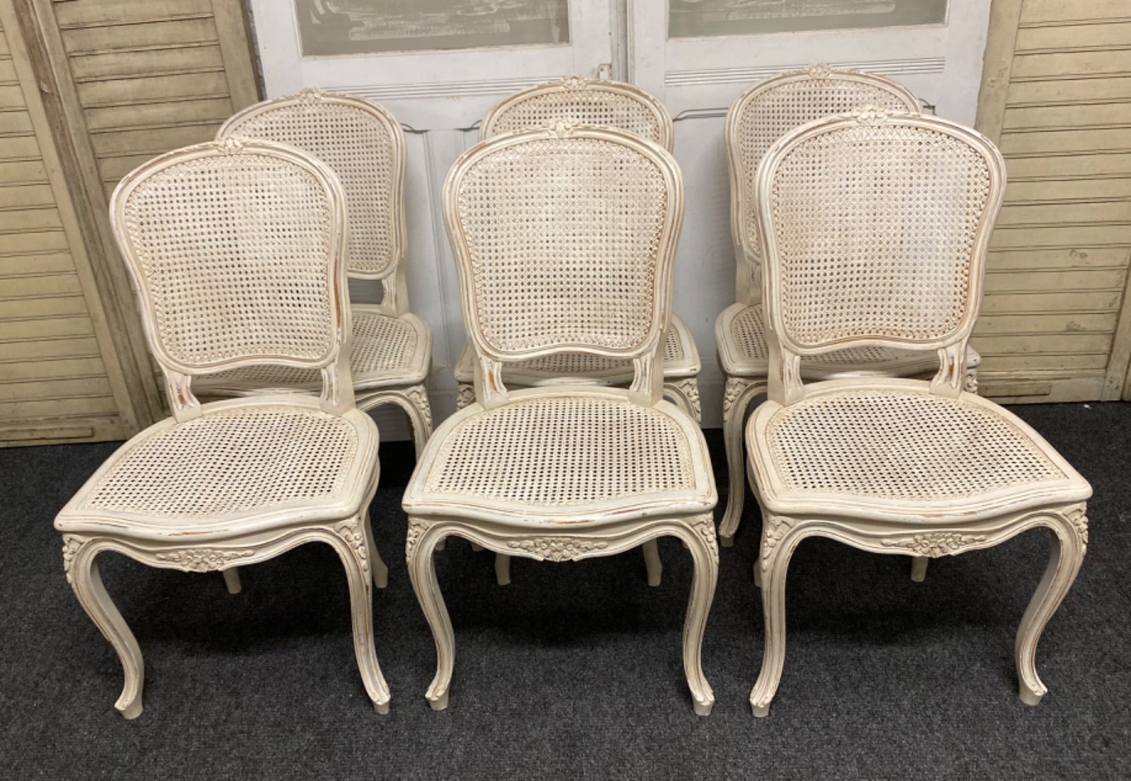 A lovely and stylish set of 6 French Dining Chairs, having original decoration which has become slightly aged over the years giving now a wonderful look. The frames are strong and sturdy, the chairs are very comfortable and the canning is perfect and very strong.