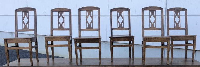 A lovely early set of French Farmhouse Dining Chairs, dating to the early 19th Century and made of Oak and Elm. Really charming chairs, strong and sturdy.