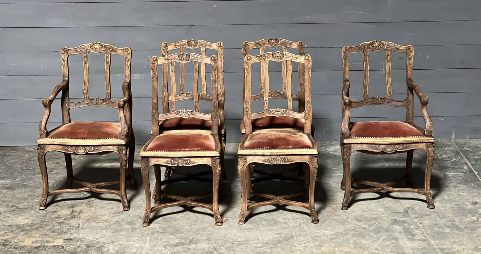 These are a lovely set of 6 (4 +2) French oak dining chairs made in the early 1900s and of good quality. We have lightly bleached them to bring out the natural wood. All strong and sturdy and very comfortable.