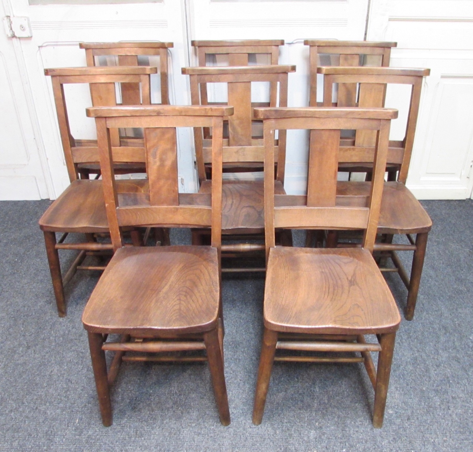 A really nice set of 8 Chapel Chairs, ideal for dining round a farmhouse kitchen table. Made from Elm and Ash and dating to the late 19th Century. They are all strong and sturdy. We have given them a nice wax so in excellent condition for the home.