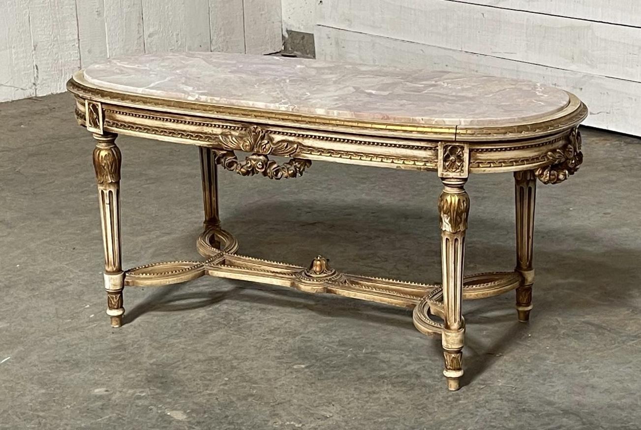Superb quality marble top coffee table, this has come from Paris and is extremely decorative, the original marble top is perfect and the base is strong and sturdy. It retains its original finish to the wood.