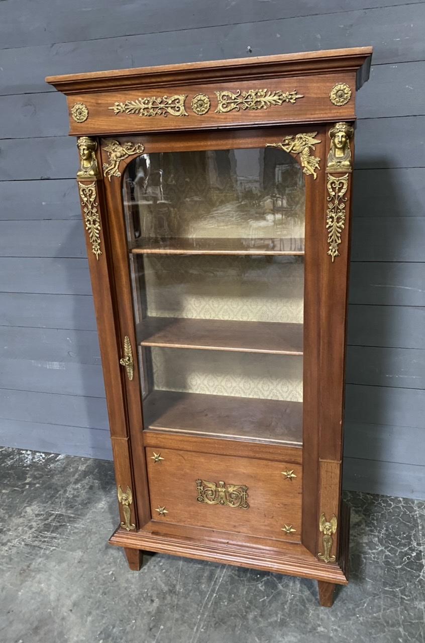 We are pleased to offer a lovely French Empire vitrine or cabinet. Made from mahogany and dating to the late 19th Century. The single lockable (key present) opens to reveal 3 shelves inside. Various high quality casted ormolu mounts of classic French Empire style. This came from a nice Parisian apartment.