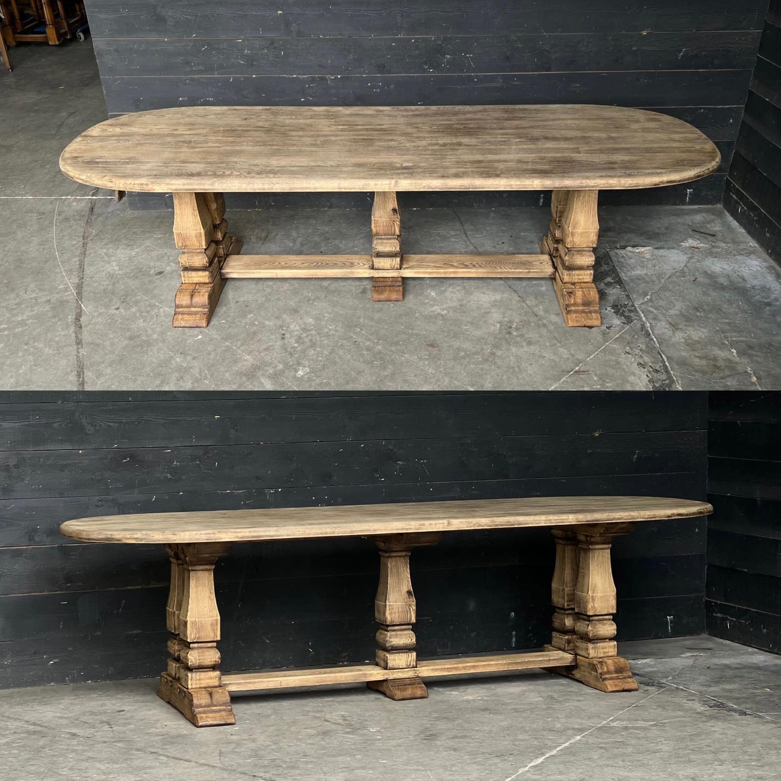 Superb Very Large French Bleached Oak Farmhouse Dining Table