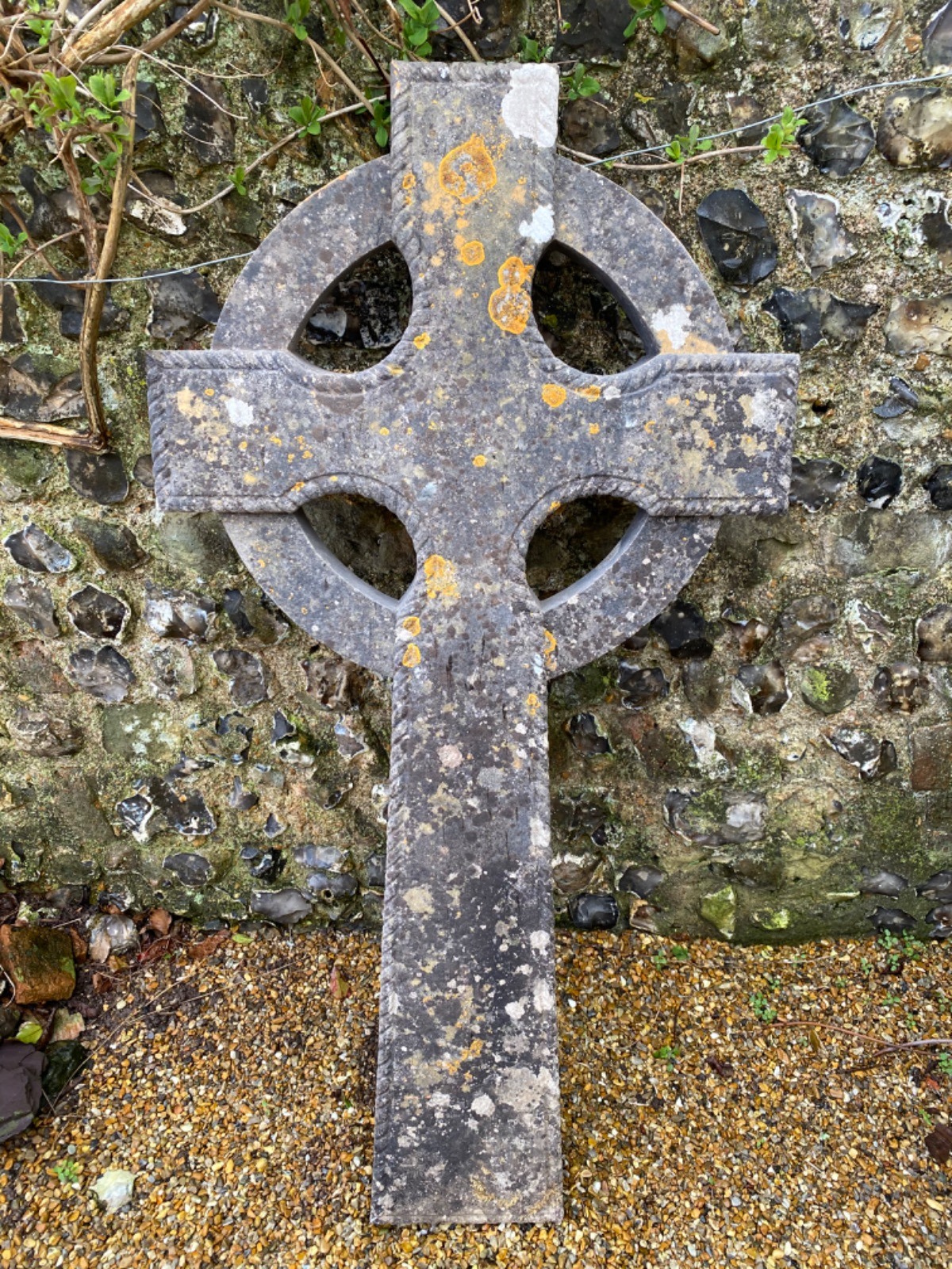 A lovely solid marble Celtic Cross, dating to the early 19th Century. Lovely original patina covered in moss. Came from a church is South Wales.