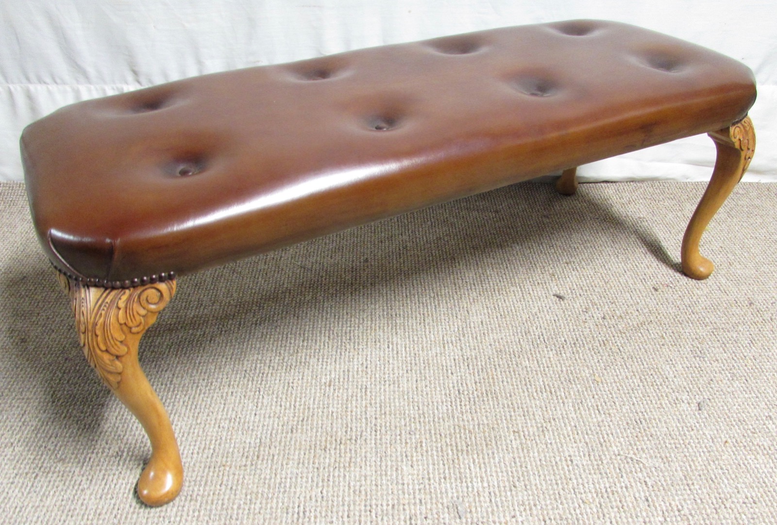A fine quality duet stool, the 4 Queen Anne legs are made from solid Walnut and nicely carved, the leather buttoned top is a hand dyed leather. The stool is strong and sturdy and has been re finished so in excellent condition for the home.
