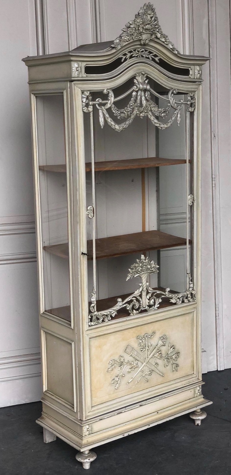 A truly wonderful French Vitrine or Cabinet, very fine quality and having original finish with a nice patina. The carved floral decoration is crisp and well executed. This highly decorative piece is in excellent condition for the home.