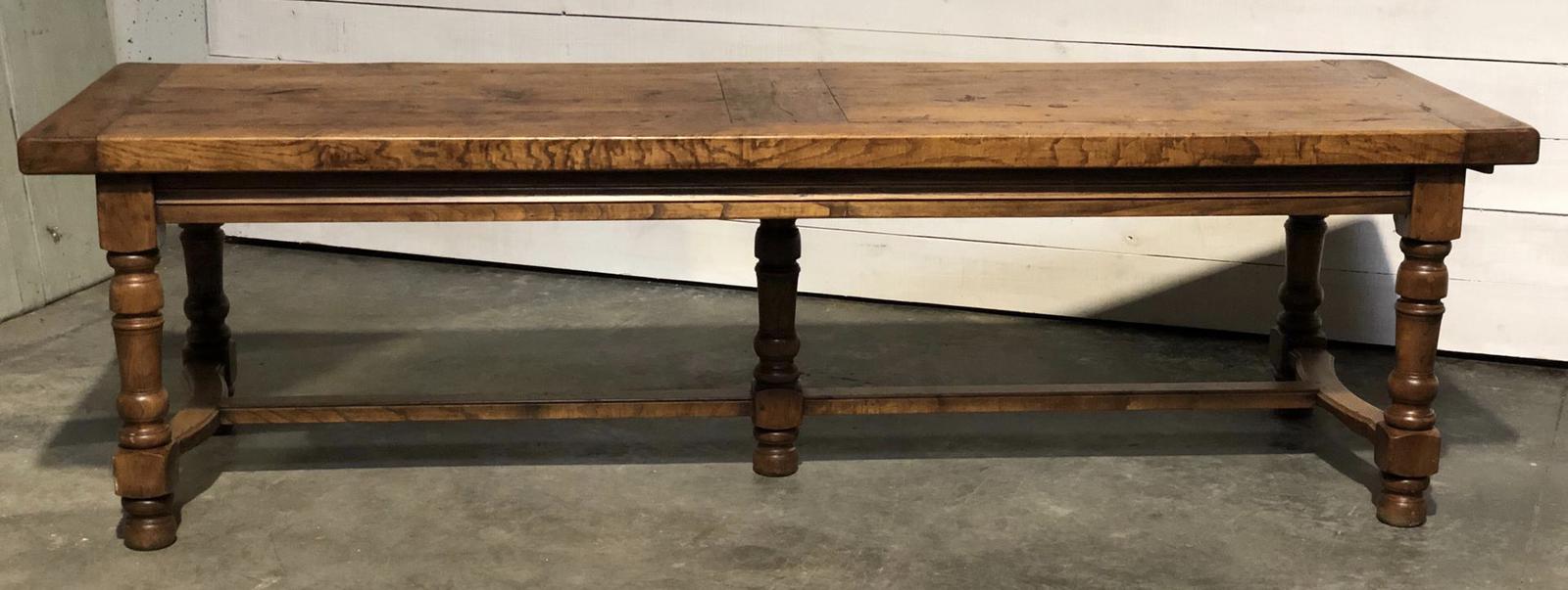 A really stunning 19th Century French Farmhouse Dining Table. Made from Solid Oak and having loads of Charm and character. Great original patina and colour. At 2.75m it would comfortably seat 14 people. A lovely feature is the pull out bread cutting slide at one end and a drawer to the other end.